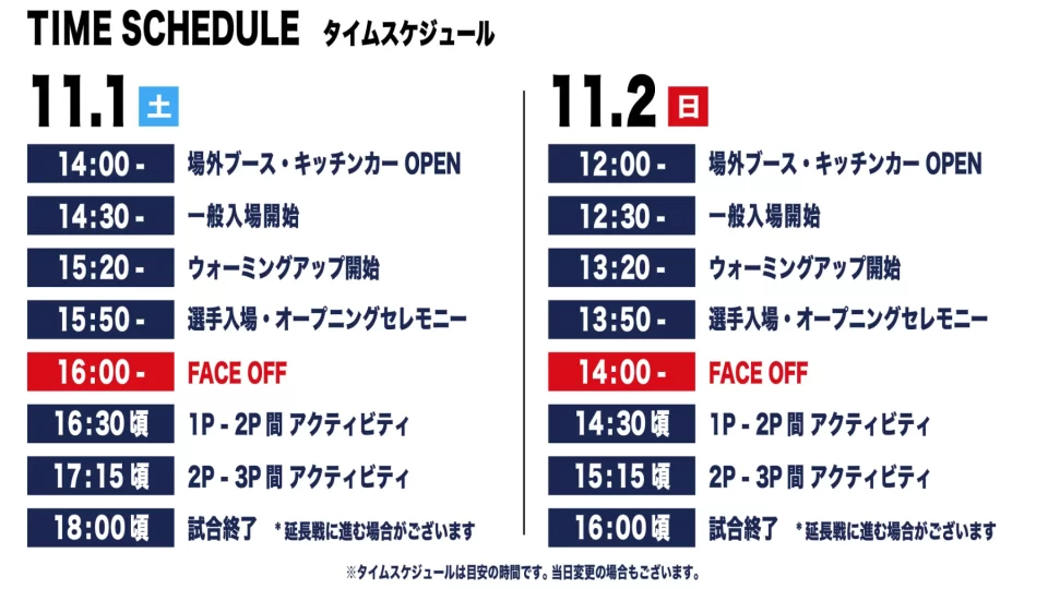 11/1(土)・2(日) ホーム開幕戦 開催情報