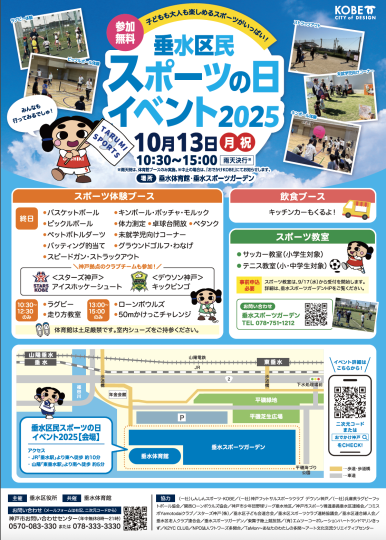 スターズ神戸は、10/13(月祝)に神戸市内の垂水体育館・垂水スポーツガーデンにて開催される「垂水区民スポーツの日イベント2025」に出展することが決まりましたので、お知らせいたします。