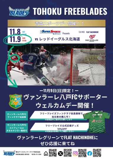 ■11月9日(日) フリーブレイズ青森スポーツデー ヴァンラーレ八戸FC応援コラボ企画