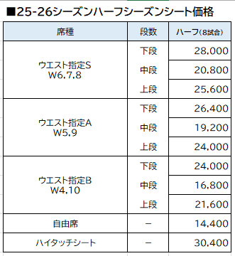 ※ハーフシーズンシートチケットについてというコメントと希望座席をご連絡ください。