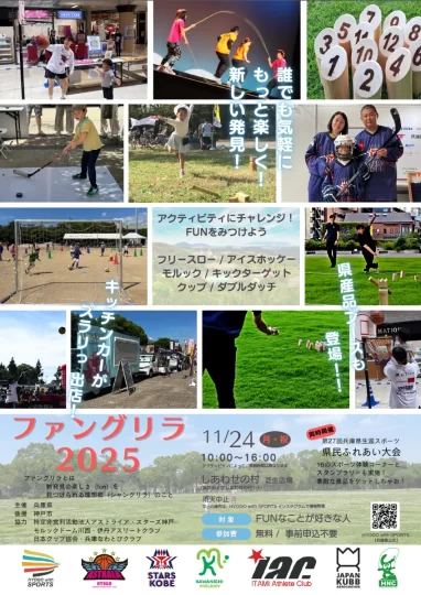 スターズ神戸は、11/24(月祝)に神戸市内のしあわせの村にて開催される「ファングリラ2025」に出展することが決まりましたので、お知らせいたします。