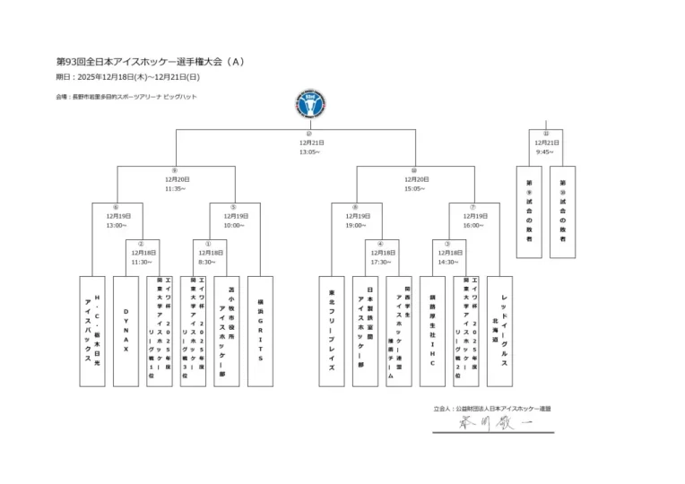 第93回全日本アイスホッケー選手権大会(A) 組み合わせ決定のお知らせ