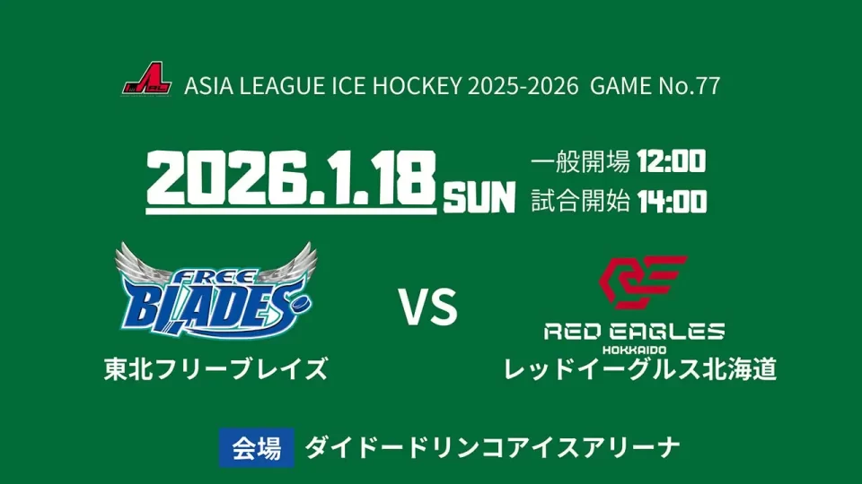 東北フリーブレイズ公式サイト:アジアリーグ2025-2026 1/17.18 東北フリーブレイズ vs レッドイーグルス北海道