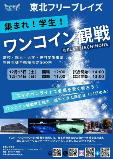 東北フリーブレイズ公式サイト:12/13,14 クリスマスゲーム特別企画:高校・専門・短大・大学生ワンコインキャンペーン