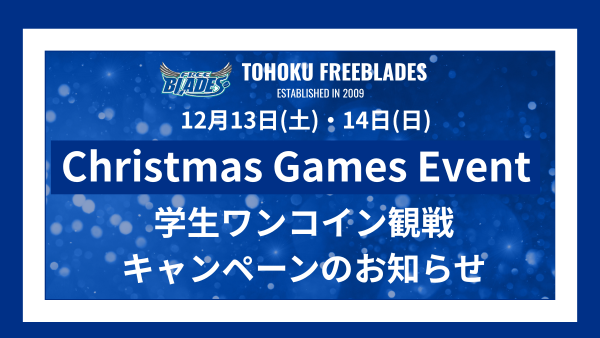 (東北フリーブレイズ)12/13,14 クリスマスゲーム特別企画:高校・専門・短大・大学生ワンコインキャンペーン