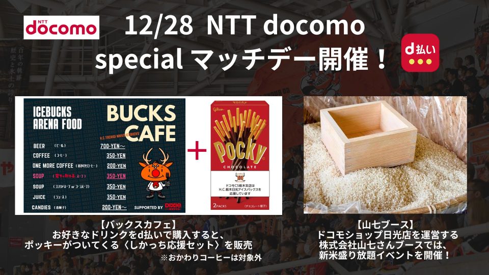 (H.C.栃木日光アイスバックス)12月28日(日)「NTT docomo Specialマッチデー」 会場情報