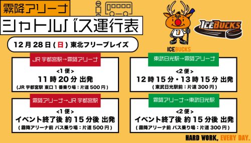 ※宇都宮-霧降アイスアリーナ間のシャトルバスについてご案内です。