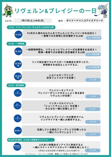 (東北フリーブレイズ)1/17,18 東京ヴェルディコラボマッチ リヴェルン来場のお知らせ