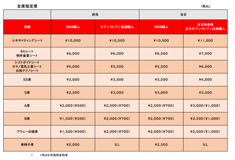 ご希望のお客様は、試合前日までにチケットサイトにて