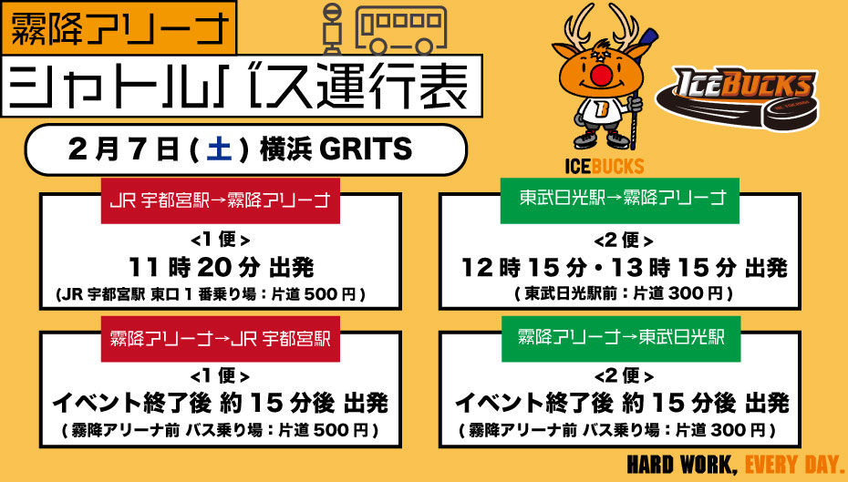 (H.C.栃木日光アイスバックス)2月7日(土)「ボヌールマッチデー」 会場情報