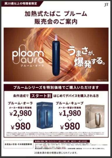 加熱式たばこデバイス(Ploom AURA)を特別価格でご購入いただけるほか、