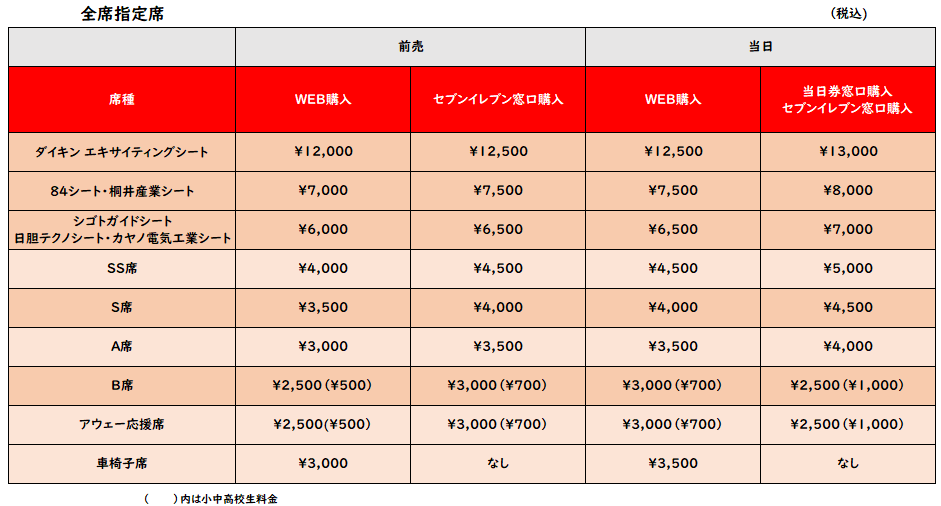 ご希望のお客様は、試合前日までにチケットサイトにて