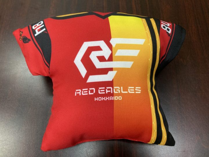 (レッドイーグルス北海道)3/14【新商品情報①】「ユニフォーム型手入れクッション」「選手別マイクロファイバーミニハンカチタオル(ガチャ)」新発売