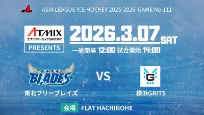 東北フリーブレイズは、2026年3月7日(日)、ASIA LEAGUE ICE HOCKEY 2025-2026、横浜GRITS戦を『エプソンアトミックス株式会社 マッチデー』として開催することが決定しましたのでお知らせいたします。