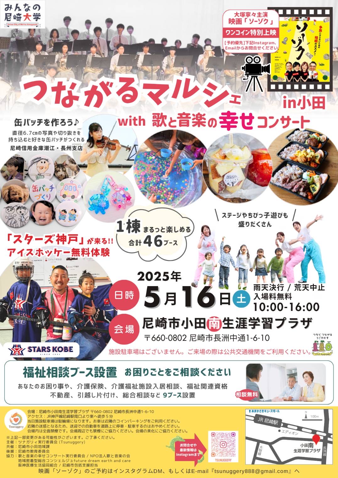 スターズ神戸は、2026年5月16日(土)に、JR尼崎駅すぐの尼崎市小田南生涯学習プラザにて開催される「つながるマルシェ with 歌と音楽の幸せコンサート in 小田」に出展することとなりましたので、お知らせいたします。